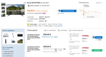 Bei 0815.eu bekommt ihr aktuell den Sony KD-55XF7005 55″ 4K UHD Smart TV, HDR, Motionflow XR 200 Hz zum Bestpreis für 449 Euro inkl.Versand PVG ab 534 Euro.