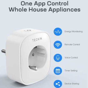 TECKIN Smart WLAN Steckdose arbeitet direkt mit Amazon Alexa und Google Assistant zusammen. Die Steckdosen bietet Echtzeit-Berichte darüber, wie viel Energie die angeschlossen Geräte verbrauchen. Erfüllt alle Sicherheitsanforderungen – Überlast-Schutz, Übertemperatur-Schutz und Hot Plug-Schutz. Bis maximal 16A.