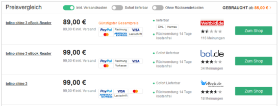 AlphaTier 31.01.2020, 09:34 #Preisvergleich 99 Euro https://www.idealo.de/preisvergleich/OffersOfProduct/6332951_-shine-3-tolino.html