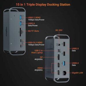- Integriertes Netzteil: Mit im Lieferumfang enthaltenem Netzkabel sorgt die Docking Station nicht nur für Datenübertragung, sondern liefert zudem ausreichend Strom, um den Laptop direkt aufzuladen – keine zusätzlichen Ladegeräte mehr nötig, reduziert Kabelchaos.