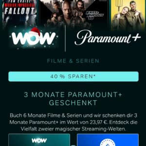 Wow Filme & Serien 6 Monate á 5,98€ & 3 Monate Paramount+ geschenkt