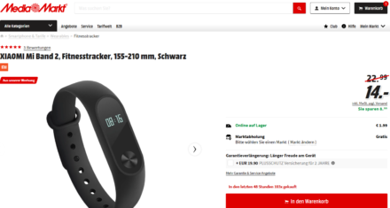 Bei Mediamarkt erhaltet ihr für 14,00 die Xiaomi Mi Band 2 Fitnessarmband Fitnesstracker schwarz statt PVG 19,79 Euro.(Bei Abholung in der Filiale ansonsten fallen 1,99 Euro an Versand an)