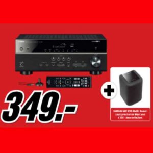 YAMAHA RX-V483 AV-Receiver (5.1 Kanäle, Schwarz) + YAMAHA WX-010 Multi-Room-Lautsprecher für 349€ bei Marktabhholung. Mit Versand würdet ihr 4,99€ mehr zahlen.