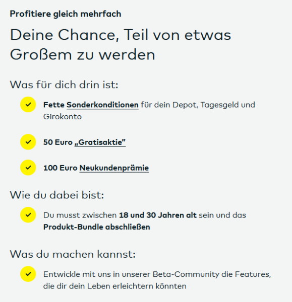 Die Aktion gilt für die Eröffnung eines Produkt-Bundles, welches im Zeitraum vom 17.02.2025 bis 10.06.2025 beantragt und bis spätestens 30.06.2025 durch die Legitimierung abgeschlossen wurde.