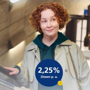 Der feste Zins (von 2,25% p.a.) gilt für 12 Monate bei einer Neuanlage von 2.500 bis 100.000 Euro.