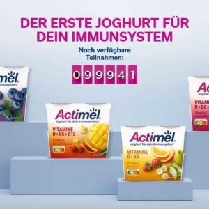 Während des Aktionszeitraumes können Endverbraucher, die im Handel eine Aktionspackung kaufen, den individuellen Aktionscode aus dem auf der Packung befindlichen Aktionssticker online eingeben und einmalig den Kaufpreis für eine Actimel Joghurt Aktionspackung auf das angegebene Konto erstattet bekommen.