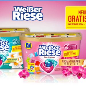 Ab dem 01.04.2022 könnt ihr Weißer Riese Trio-Caps Waschmittel gratis testen.
