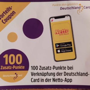 Wer erstmalig die DeutschlandCard in der Netto App hinterlegt, erhält hierfür 100 Zusatzpunkte.