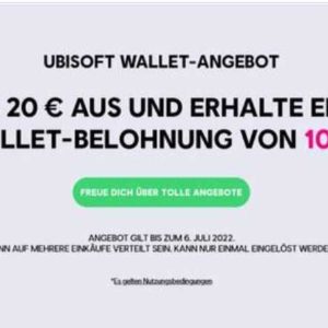 10€ Ubisoft Wallet Guthaben geschenkt ab 20€ Einkaufswert beim Ubisoft Summer Sale bis 06.07.2022 15:00 Uhr