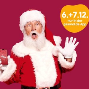 Der Gutscheincode ist gültig vom 6.12. bis 7.12.2023 und nur in der gesund.de App ab einem Bestellwert von 13€ einlösbar. Keine Barauszahlung. Nur gültig bei einer Bestellung von nicht auf Rezept abgegebenen Produkten. Pro Kundenkonto ist pro Werbeaktion nur ein Gutscheincode einlösbar. Verschiedene Gutscheine / Rabattaktionen sind nicht miteinander kombinierbar. Die Gutscheineinlösung ist nur mit aktivem Benutzerkonto möglich. Der Wert des im Bestellprozess eingegebenen Gutscheins wird automatisch vom Rechnungsbetrag der nicht auf Rezept abgegebenen Produkte abgezogen. Voraussetzung ist die Angabe des Gutscheincodes im Warenkorb. Eine nachträgliche Anrechnung des Gutscheins ist nicht möglich.