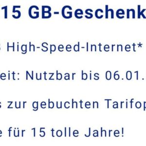 Da gibt es jetzt ein 15 GB Datenvolumen „Jubiläumsgeschenk“ für alle Nutzer mit Internetvolumen im Tarif.
