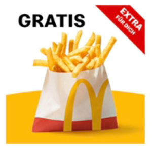Schaut bitte in die Mc Donalds App rein: ich habe bei mir einen Gutschein für gratis kleine Pommes gefunden- einlösbar bis 11.6. Immerhin 2,59€ gespart.