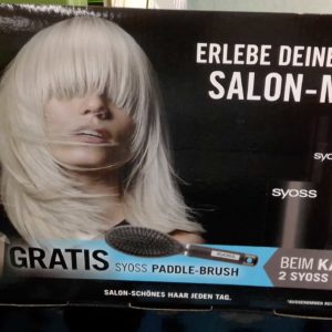Wenn man 2 Syoss Produkte kauft kann man sich eine Haarbürste von Syoss mitnehmen .