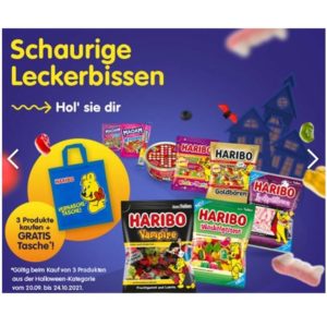 Aktuell erhaltet ihr beim Kauf von 3x Haribo Halloween Produkten eine Vernasche-Tasche geschenkt. Ihr könnt die Tasche direkt im Markt mitnehmen.