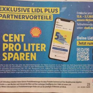 Ab 12. Juni 2023 gibt es in der Lidl Plus App wieder einen Gutschein über 5ct pro Liter bei Shell.