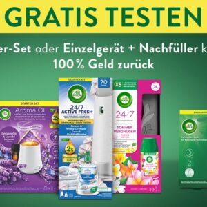 Wichtig: Ihr könnt nur EINES davon gratis testen – entweder ein Air Wick Starter-Set ODER ein Einzelgerät + Nachfüller.