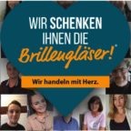 *Angebot gültig bis 31.05.2020 auf Nah-/ Fern – und Standard-Gleitsichtgläser 1,5 mit Superentspiegelung Hartschicht und Cleancoat. Es obliegt dem Kunden, eine eigene Fassung verglasen zu lassen oder eine neue käuflich zu erwerben. Es können für das Einarbeiten der Gläser in die eigene Fassung Gebühren anfallen (Standard Einschleifgebühr). Nicht mit anderen Aktionen kombinierbar. Pro Person 1 Glaspaar geschenkt.