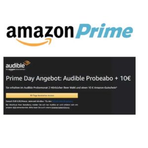 Amazon Prime: 30 Tage kostenloses Probeabo audible + 10€ Gutschein + 2 gratis Hörbücher