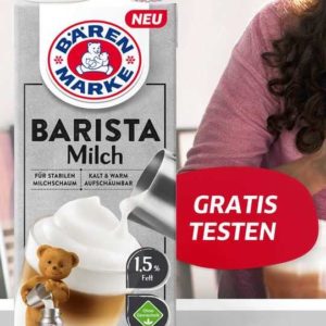 - 1 Packung Bärenmarke Barista Milch kaufen und probieren.
