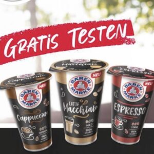 • 1 Becher Bärenmarke Eiskaffee in den Sorten Latte Macchiato, Cappuccino oder Espresso kaufen und probieren.