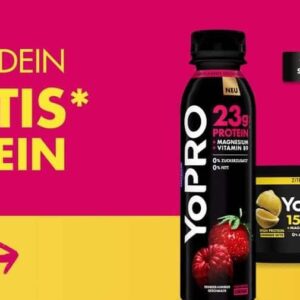 Es wird nur der auf dem Kassenbon angegebene Kaufpreis für ein YoPRO Produkt (exkl. Pfand) einmalig erststattet. Im Falle mehrerer gekaufter YoPRO Produkte auf einem Kassenbon wird das teuerste YoPRO Produkt (exkl. Pfand) erstattet. Eine Kombination mit anderen Gutscheinen oder Aktionen ist nicht möglich. Auszahlungsansprüche sind nicht auf Dritte übertragbar.