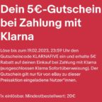 ebay 5€ Rabatt durch Klarna Zahlung ab 20€