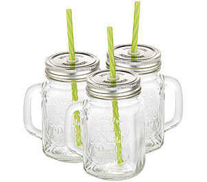Ein Deal zum mitbestellen: Retro-Trinkglas mit Henkel, Deckel und Trinkhalm im 3er-Set gratis (VSK 4,90 €)