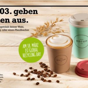 Am 18. März ist global Recycling day und zur Feier des Tages spendiert Aral ein Heißgetränk (Kaffee- oder Teespezialität deiner Wahl im REWE To Go oder PetitBistro in allen Größen).