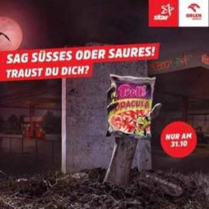 Auch wenn das Tanken derzeit sehr teuer ist, solltet ihr bei eurem Halloween-Familienausflug kurz mit euren Kindern / Enkelkindern an einer Star- oder Orlen-Tankstelle anhalten.