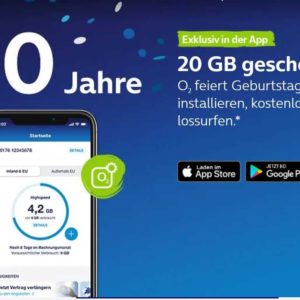 Dann könnt ihr euch jetzt das 20 GB Datengeschenk für O2 Bestandskunden aus Anlass des 20. Geburtstages von O2 holen.