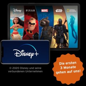 Aktion für Optionsbuchung bis zum 31.12.2020: Die congstar Video Option – Disney+ ist in den ersten 3 Monaten zu den congstar Tarifen congstar Allnet Flat S / M / L, Youngster und M / L, Fair Flat kostenfrei zubuchbar. Ab dem 4. Monat kostet die congstar Video Option – Disney+ 5,85 €/Monat (entspricht dem Standard-Angebot von Disney+ im Wert von 6,99 €/Monat). Die Option ermöglicht die Nutzung von „Disney+“. Voraussetzung für die Buchung und Nutzung von Disney+ ist ein Wohnsitz in Deutschland und die Zustimmung zu den Nutzungsbedingungen der The Walt Disney Company (Benelux) BV. Für Disney+ gelten eine gesonderte Datenschutzerklärung, Cookie-Richtlinie und UK- & EU-Datenschutzhinweise. Dieser Preis berechnet sich gemäß eines Mehrwertsteuersatzes von 16% und gilt vom 01.07. bis voraussichtlich 31.12.2020. Die Mehrwertsteuer ändert sich voraussichtlich ab dem 01.01.2021 auf 19%. Der Optionspreis erhöht sich in diesem Fall auf 6,00 €/ Monat. Das Angebot gilt nur bei erstmaliger Buchung der Option. Die Laufzeit beginnt mit der Bereitstellung bzw. bei Erhalt der E-Mail zur Registrierung bei Disney+. Bei Kündigung des zugrundeliegenden congstar Tarifs entfällt die congstar Video Option – Disney+. Bei mobiler Online-Nutzung der Option wird das hierfür genutzte Datenvolumen des congstar-Mobilfunkvertrages belastet. Die Option hat eine Mindestvertragslaufzeit von 1 Monat und ist jederzeit zum Ende des jeweiligen Abrechnungsmonats kündbar. Die Kündigung erfolgt gegenüber congstar.