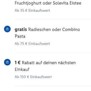 Also immer die App vorzeigen, auch bei kleinen Einkäufen! Nach Erreichen des Wertes wird der Coupon für das Gratisprodukt automatisch bereitgestellt.