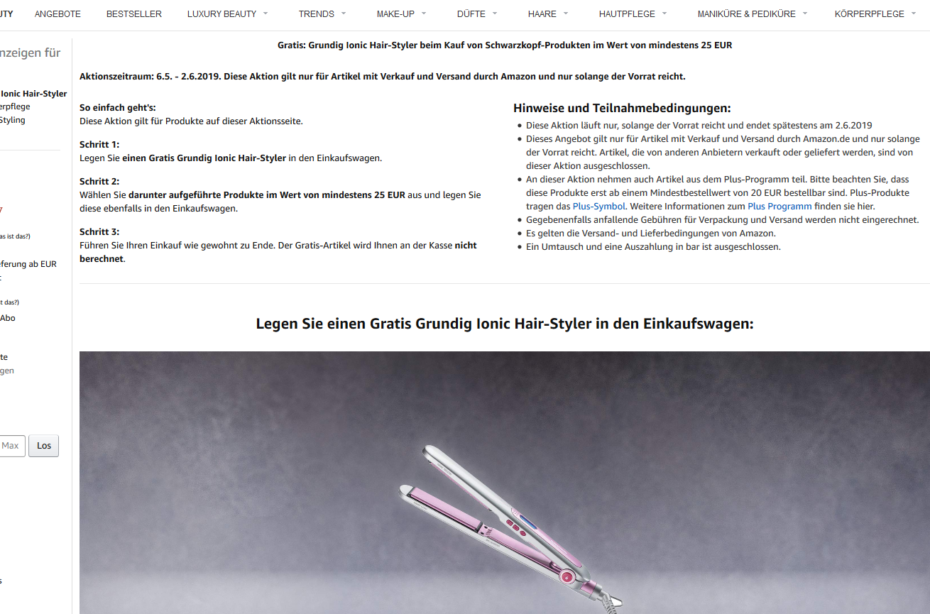 Bei Amazon Tolle Aktion Gratis: Grundig Ionic Hair-Styler beim Kauf von Schwarzkopf-Produkten im Wert von mindestens 25€
