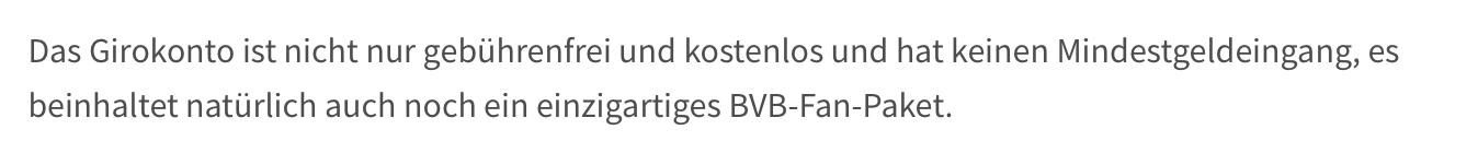 Das Girokonto ist nicht nur gebührenfrei und kostenlos und hat keinen Mindestgeldeingang, es beinhaltet natürlich auch noch ein einzigartiges BVB-Fan-Paket.