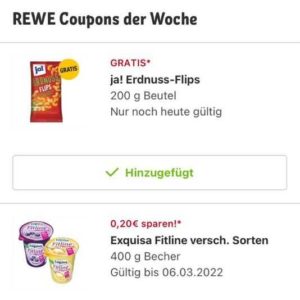 Nur heute gibt es in der Rewe App einen Coupon für einen Beutel Erdnuss-Flips 200 g von der Marke „JA“ ab 10€ Mindesteinkauf.