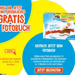 Derzeit könnt ihr euch ein gratis Fotobuch beim Kauf einer Aktionspackung Milchschnitte sichern.