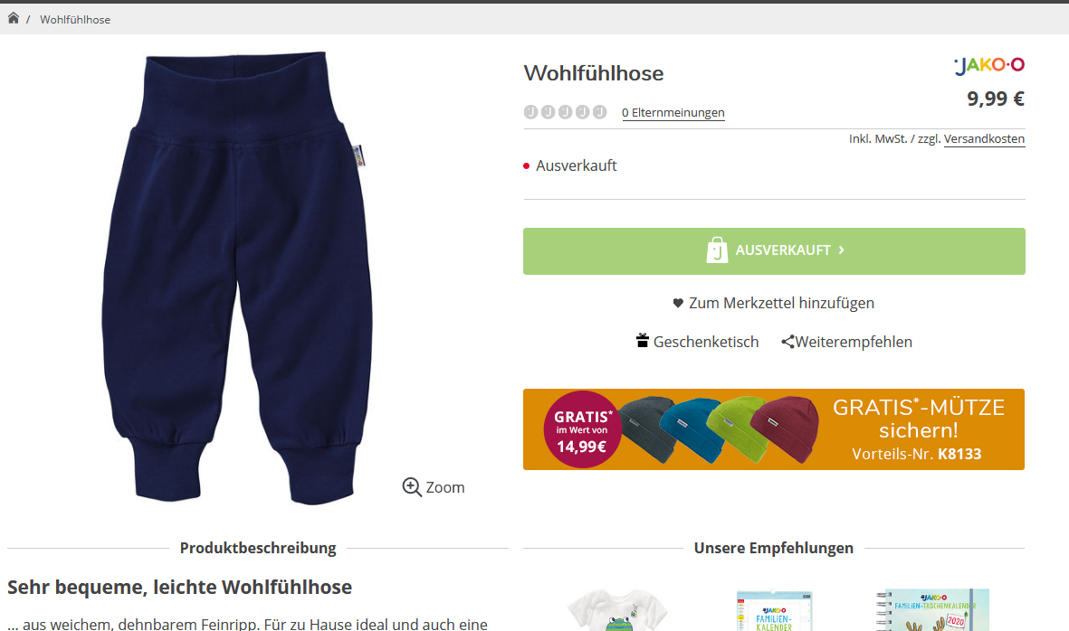 Momenten könnt ihr euch eine gratis JAKO-O Wohlfühlhose Größe 68/74 sichern inkl. kostenlosen Versand.