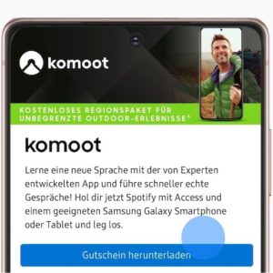 Dann könnt ihr euch jetzt ein gratis komoot-Regionspaket mit einem geeigneten Samsung Galaxy-Smartphone oder -Tablet.