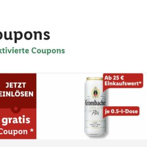 GRATIS Krombacher in der Lidl plus App (MEW 25 €)