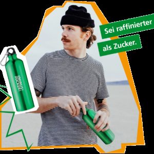 Unter dem Motto „Mach Schluss mit dem Süßen“ wirbt die AOK u. a. mit dem Slogan „Trink mal Wasser“.