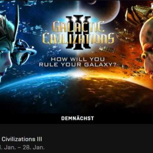 GRATIS Spiel „Galactic Civilizations III“ + 21 weitere Spiele im Epic-Games-Store vom 21.01.21 17:00 bis 28.01.21 16:59 Uhr