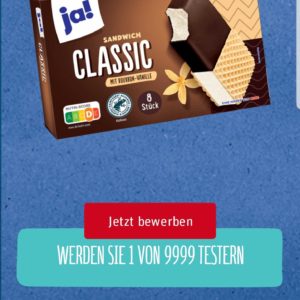 GRATIS TESTEN bei Rewe: ja! Eis-Sandwich Classic (1 von 9.999 Produkttester)
