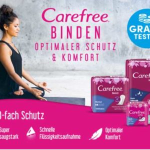 Derzeit könnt ihr die neuen Carefree Binden gratis testen.