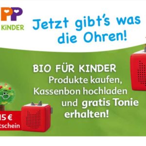 Derzeit könnt ihr euch ein gratis Tonie vom Kauf von Hipp-Produkten im Wert von mind. 50€ sichern.