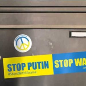 Wollt ihr Flagge gegen den Putin-Krieg in der Ukraine zeigen?Dann könnt ihr dies jetzt mit kostenlosen Stickern (z. B. für euren Briefkasten) oder Plakaten (z. B. in Geschäften) tun.