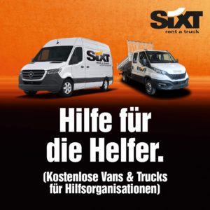 Die Firma Sixt stellt den Hilfsorganisationen jetzt Vans & Trucks zur Bewältigung der Flutkatastrophe kostenlos und unbürokratisch zur Verfügung.