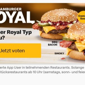 heute kann man sich in der McDonalds App einen Gutschein für einen Hamburger Royal sichern. Vielleicht ist er personalisiert, aber bis jetzt hat es bei allen geklappt 🙂