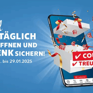 In der Kaufland App kannst Du vom 23.01. bis 29.01.2025 täglich ein Geschenk öffnen. Damit kannst du dir z.B. Coupons für Gratisartikel oder Treuepunkte sichern. Die Teilnahme ist 1x täglich möglich.