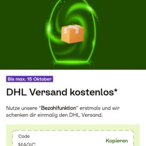 Nutze unsere „Bezahlfunktion“ erstmals und wir schenken dir einmalig den DHL Versand.