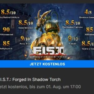 Im EPIC Games Store erhaltet ihr KOSTENLOS vom 25.07. (17:00 Uhr) – 01.08.24 (17:00 Uhr) das PC-Spiel F.I.S.T.: Forged In Shadow Torch.